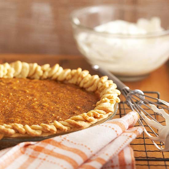 5.Cover edge of pie with foil to prevent overbrowning. Bake for 45 to 50 minutes or until filling is set. Cool on a wire rack. If desired, serve with Sweetened Whipped Cream or vanilla ice cream.