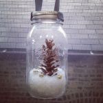 To create a cute miniature snow globe at home, grab your favorite mason jar. Kids can add fake snow, pinecones, and evergreen branches. Add their favorite characters or photos.