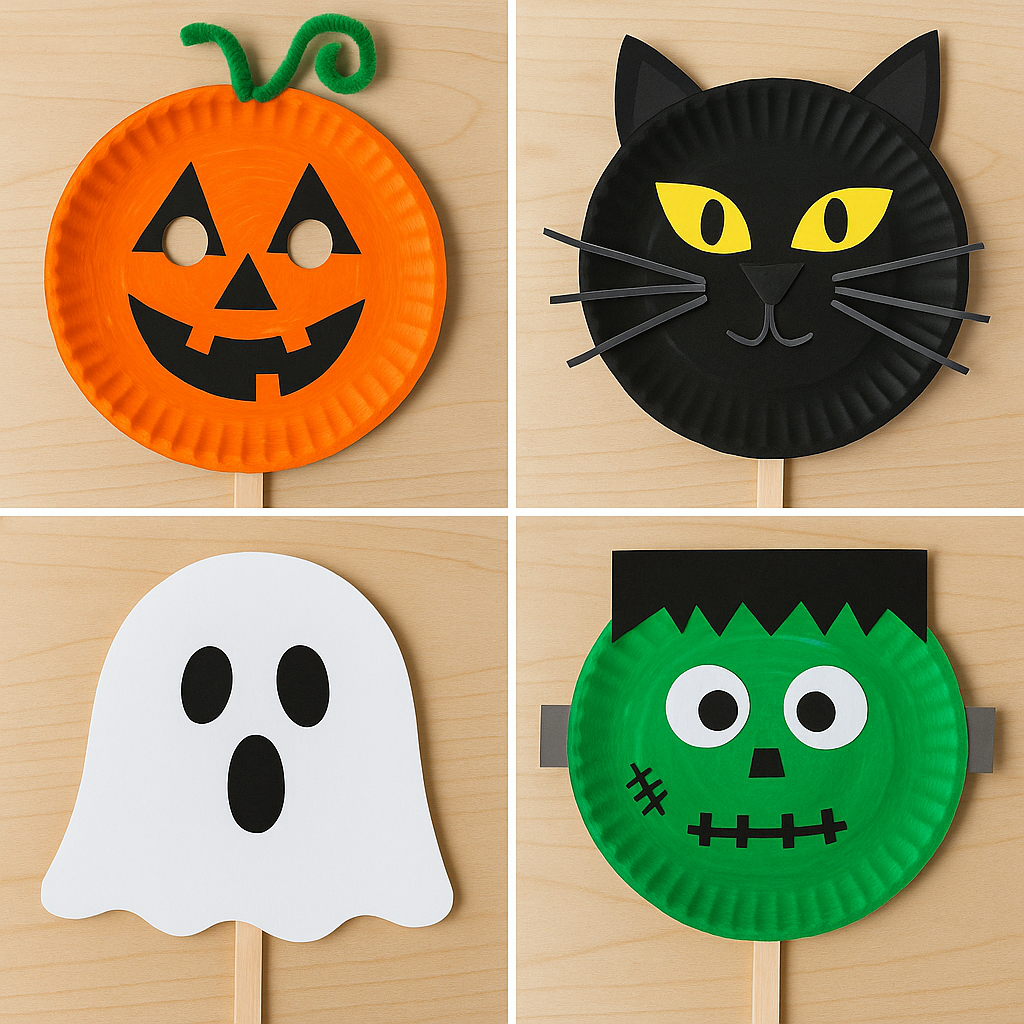โจ Variation: Instead of a pumpkin, kids can decorate their plate as a black cat, ghost, or Frankenstein using paint and paper shapes.