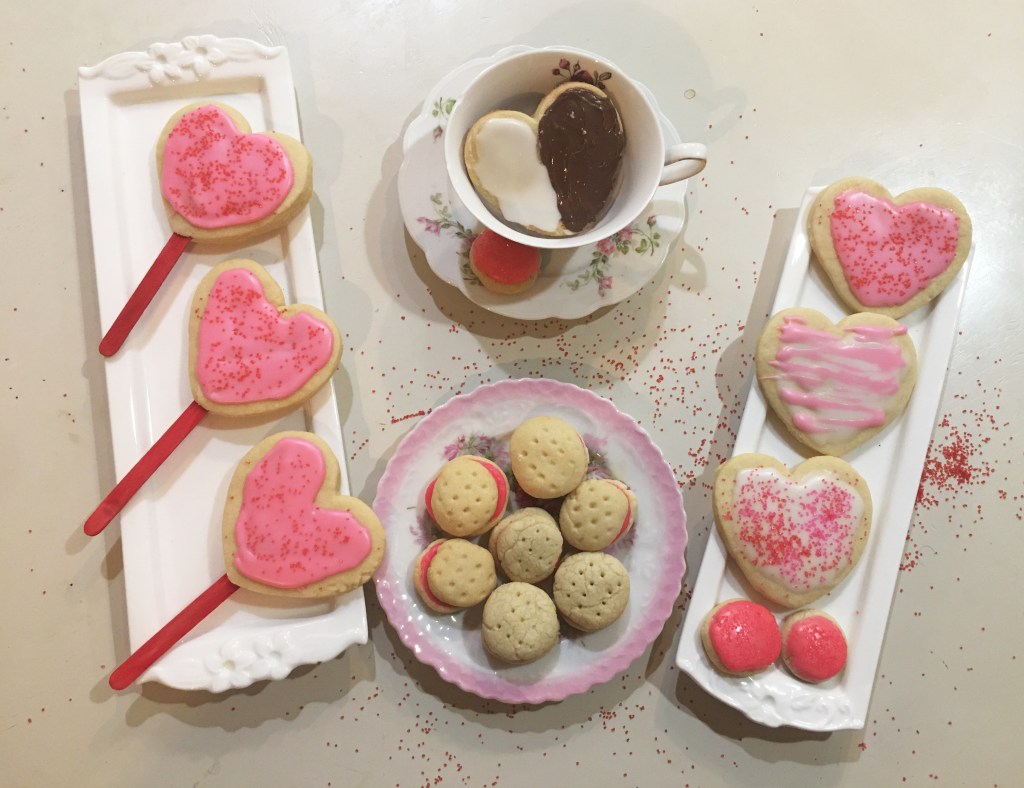 This super easy Valentine’s Day cookie recipe can be used for 5 different Valentine’s cookies! This sugar cookie recipe doesn’t need to be chilled and it holds its shape really well. Its cloud-like texture is also easy for kids to roll and use with their favorite cookie cutter. With this recipe, we made traditional Valentine’s sugar cookies with icing, Valentine’s cookie pops, mini Valentine’s cookie sandwiches, black and white heart cookies, and mini Valentine’s sugar cookies.