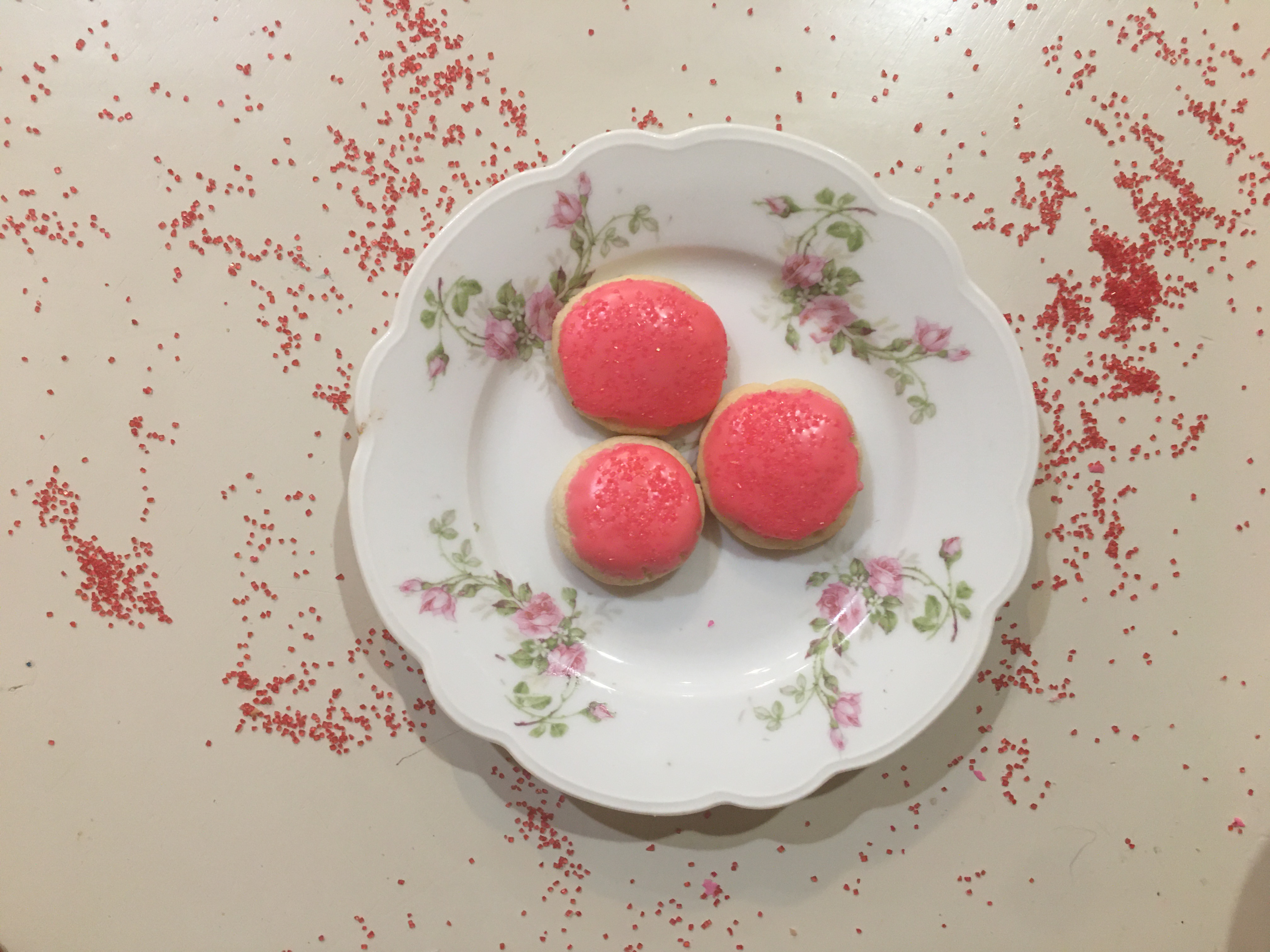 To make mini-sugar cookies, follow the recipe instructions above. Your small dough ball will be about the size of a quarter. Flatten down gently and bake and decorate as instructed.