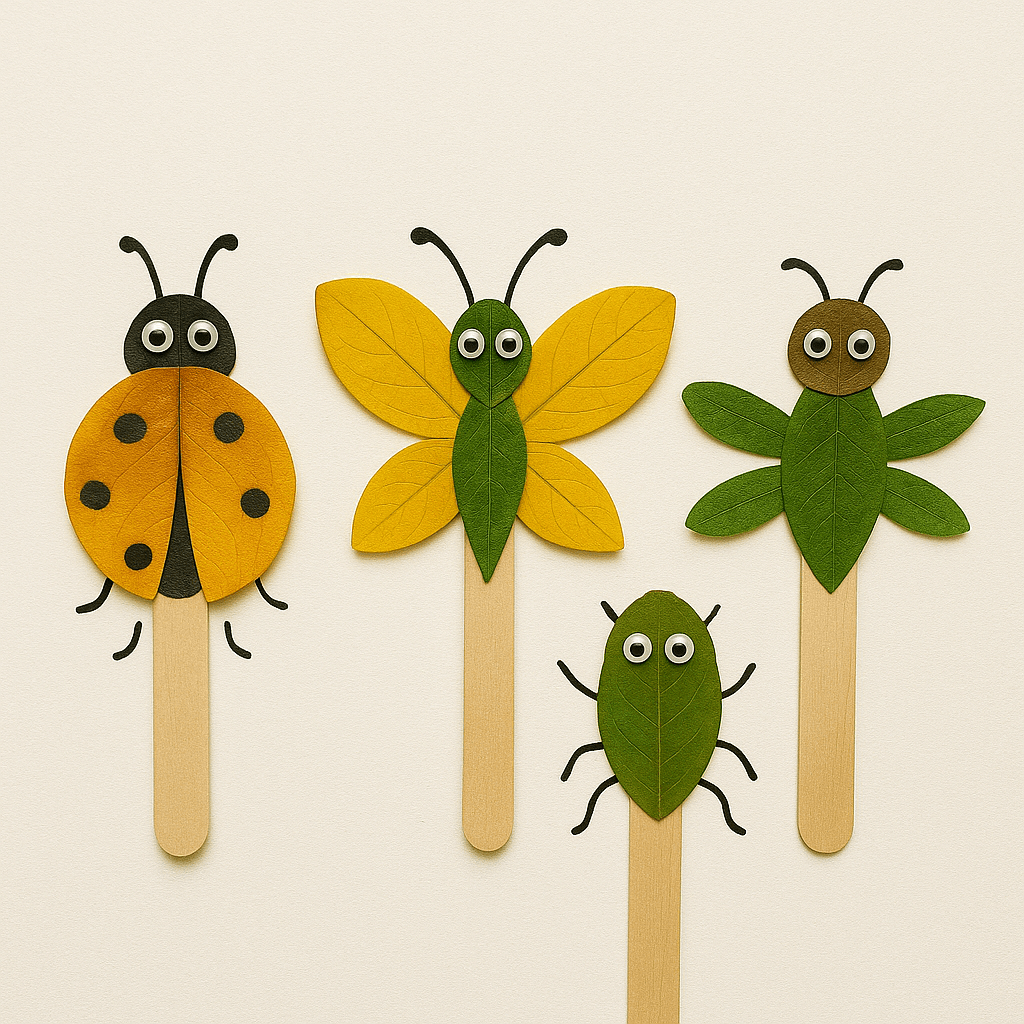 Once dry, glue the sticks onto the paper to form tree trunks, branches, or fun shapes (like a leaf frame). Then glue the painted leaves onto the branches, or scatter them around like falling leaves. - Optional Details
