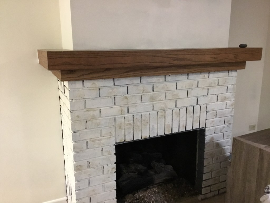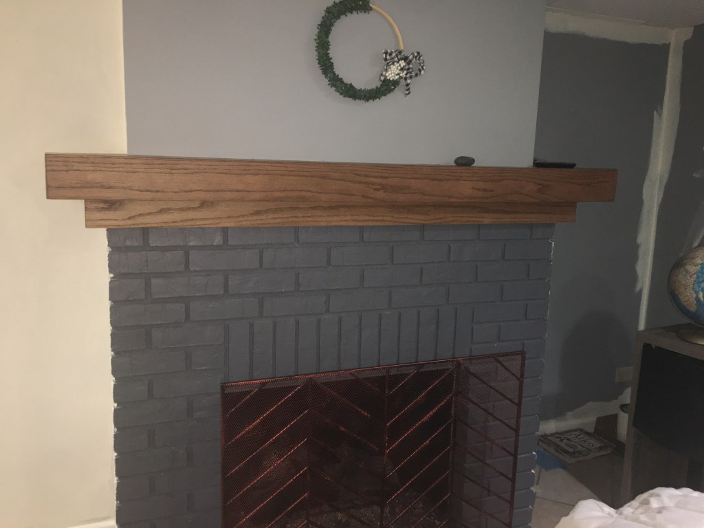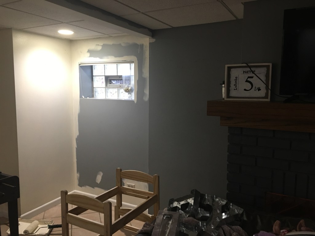 Our basement was a blue/gray color and since we only have one window down there it made it feel pretty dark. While I love the look of a dark-colored and moody basement, I wanted to brighten ours up. The color I chose is Behr, Cotton Knit. I used it on the walls and the fireplace.