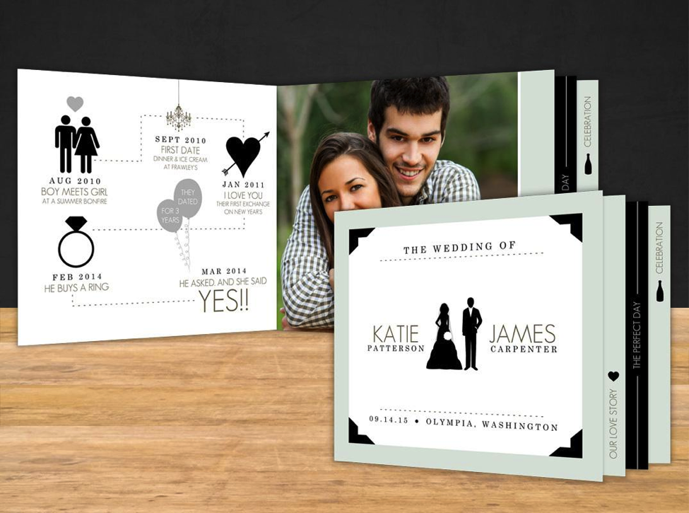 Offering plenty of space for wording, photos, maps, future plans, and personalized design, our wedding booklet cards will showcase everything you ever wanted to share about your big day in a unique way.
