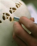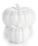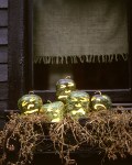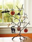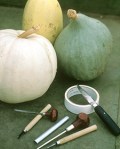 Assembled from yarn, rope, and foam balls, these homespun pumpkin decorations are simple to make. For each, gently press top and bottom of a Styrofoam ball against a work surface to flatten ends (so ball doesn’t roll). Wrap orange roving around ball. Insert a T pin into top. Tie cream or orange mohair yarn to pin and cover ball. Cut a length of rope; place over pin, and attach with a hot-glue gun, pressing to secure.
