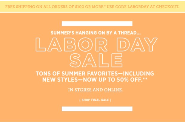 J.Crew Labor Day sale: new styles added (plus, FREE SHIPPING) September 1, 2010September 1, 2010Leave a comment Shopย jcrew.com or in stores! Clickย herefor Chicagoland locations. Use Code: LABORDAY at checkout for FREE SHIPPING Share this: Click to share on Pinterest (Opens in new window) Pinterest Click to share on Facebook (Opens in new window) Facebook Click to share on X (Opens in new window) X Click to share on Tumblr (Opens in new window) Tumblr Click to email a link to a friend (Opens in new window) Email More Click to share on Reddit (Opens in new window) Reddit Click to print (Opens in new window) Print Like Loading...